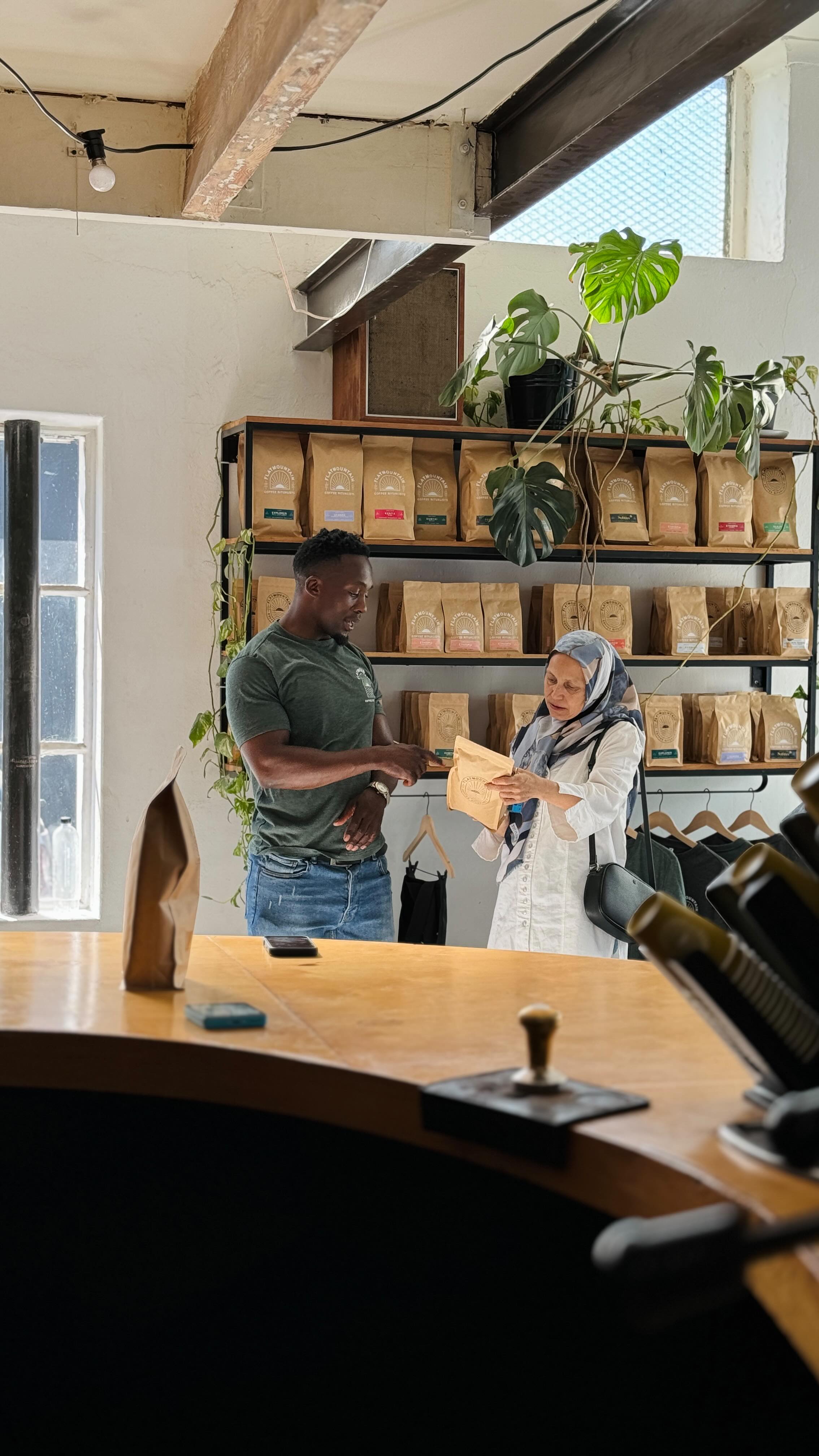 This specialty coffee roastery and café serves as an unexpectedly calm haven amidst the chaos of Woodstock Main Road.